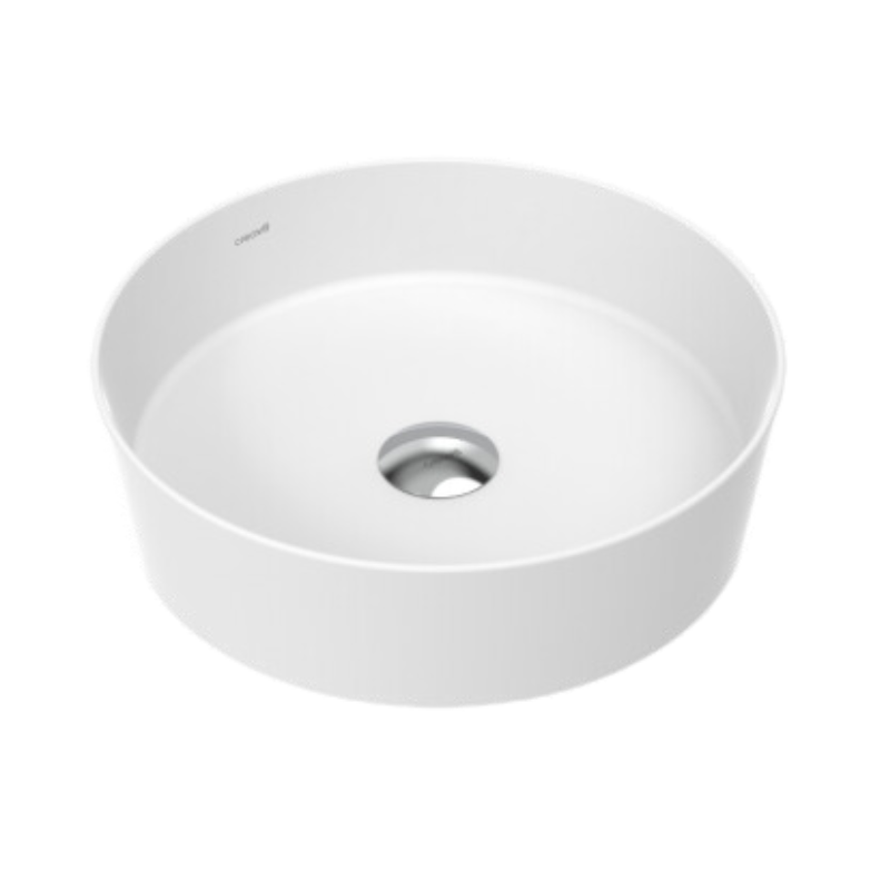 Vasken er laget av slitesterk keramikk som er enkel å rengjøre og motstandsdyktig mot flekker. Den runde formen gir et mykt og harmonisk preg, samtidig som den gir god plass i vaskeflaten. LOOP porselensvask Ø40 passer perfekt til både veggmonterte og høye armaturer.