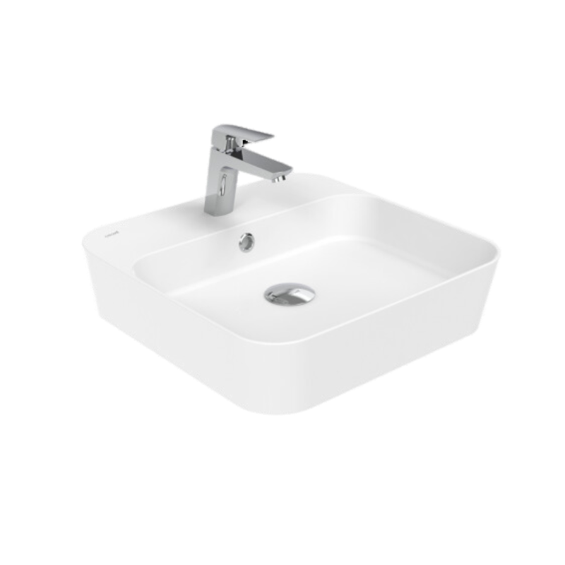 LOOP kvadratisk porselen servant på 45 cm kombinerer funksjonalitet med tidløst design. Servanten har en moderne, kvadratisk form som gir badet et stilrent uttrykk og passer både til små og store baderom.