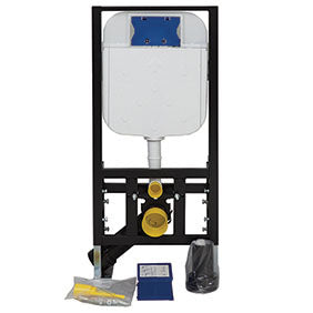 Skjult sisterne med ramme for montering mot vegg – en praktisk og plassbesparende løsning for moderne baderom. Systemet leveres med 3 og 6 liters spyling og er tilpasset kontrollpanel med manuell betjening.